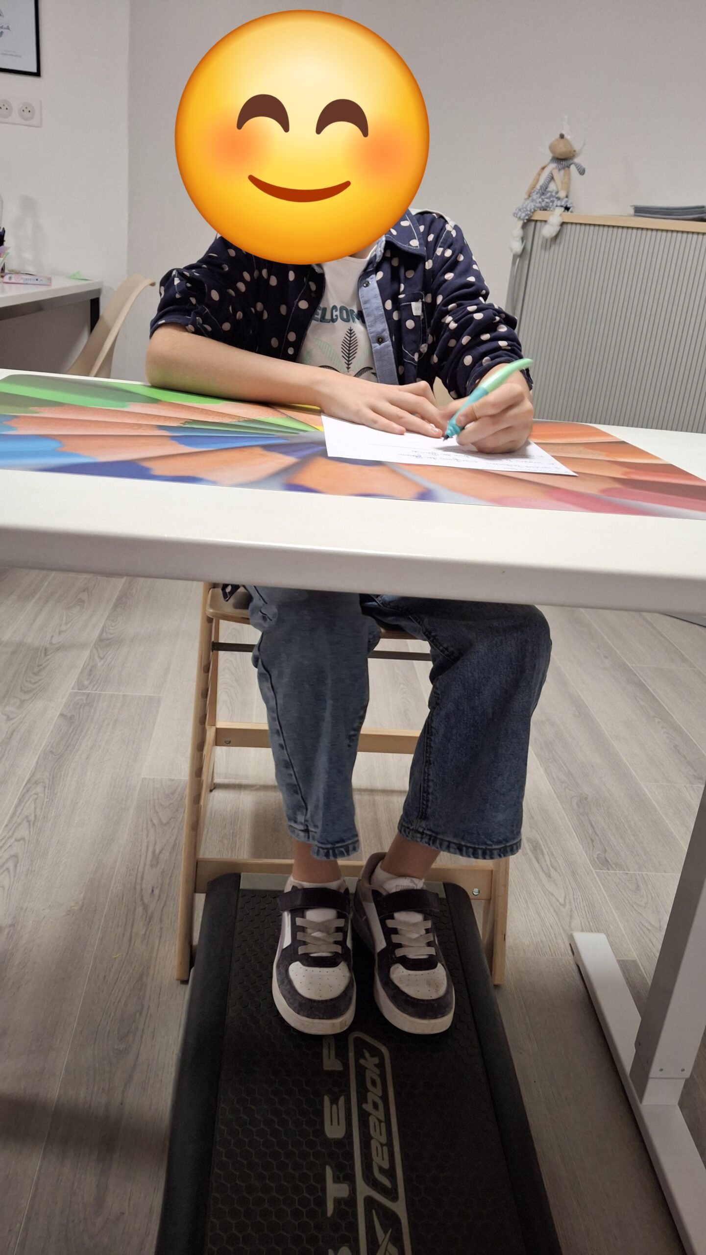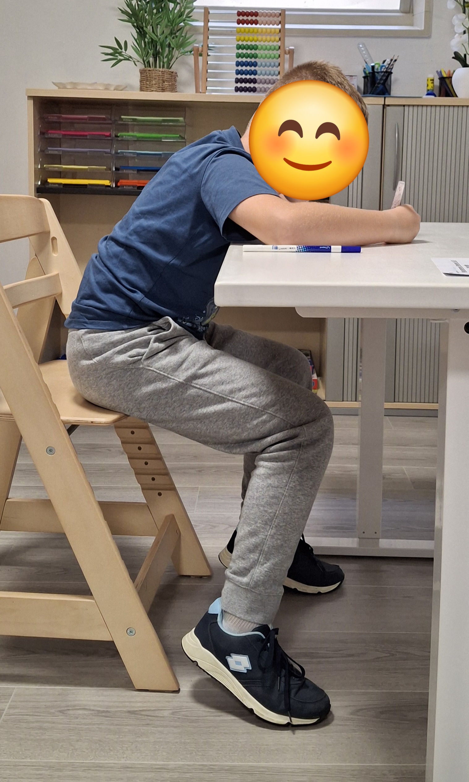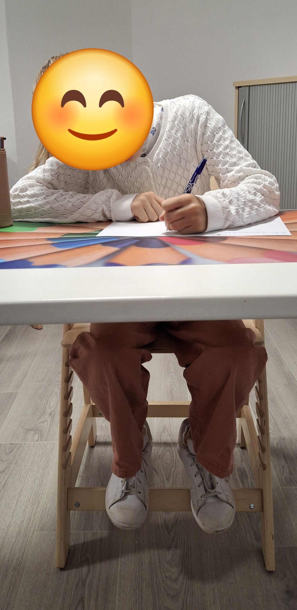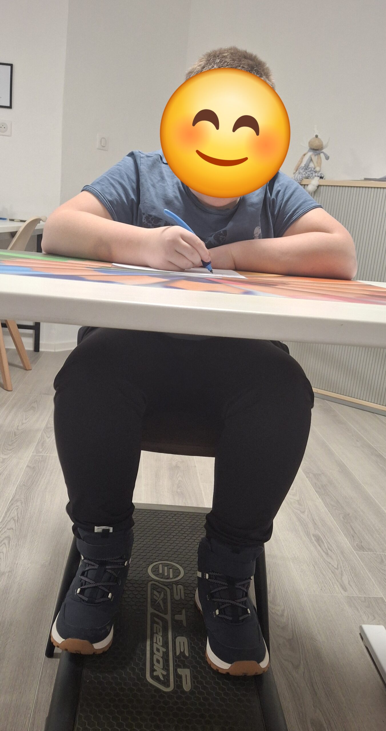 Z. gauchère au CE2 est venue consulter à cause d’une lenteur d’écriture ainsi qu’un manque de fluidité. Voici sa posture lors du bilan, complètement penchée sur le côté, et son évolution à la 8e séance. Seule la tête reste à redresser.
