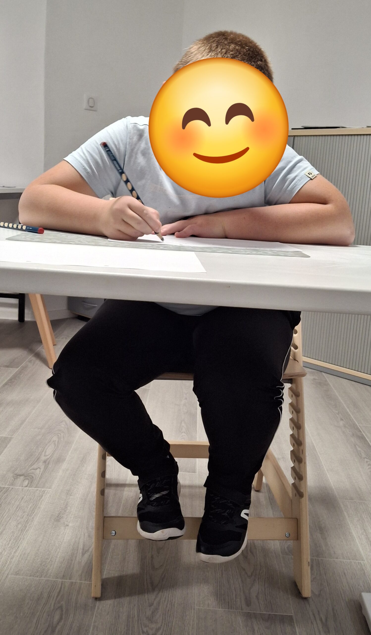 L. droitier en CM2 avait une mauvaise posture. Voici son évolution lors de la 8e séance : une belle position qui permet à l’avant-bras de se déplacer sans gêne.